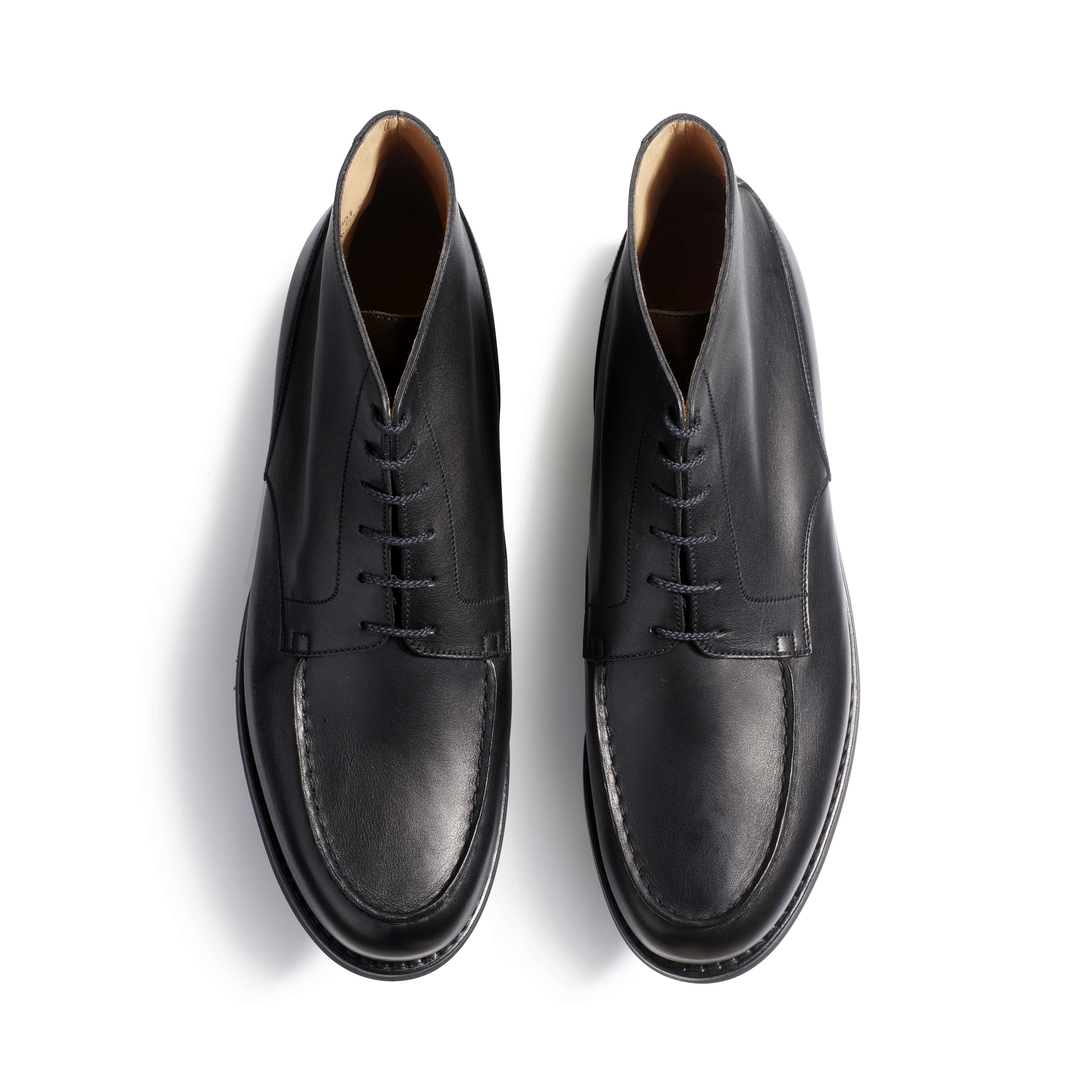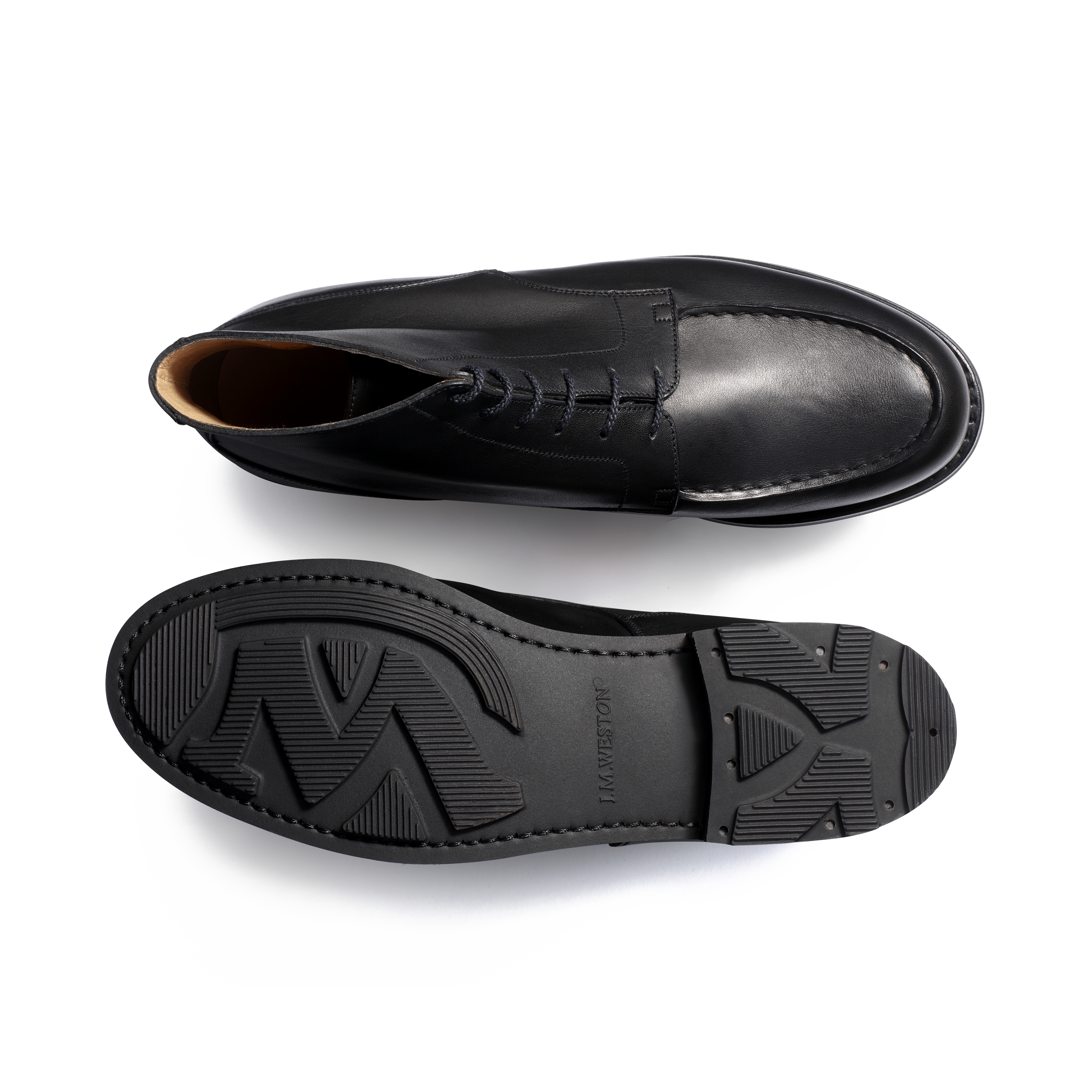 メゾンを象徴するモデル、ゴルフ#641のシェイプはそのままに、美しい曲線を描くブーツに再設計されたゴルフハイトップダービー。しなやかで足当たりの良いスムースカーフと脚を支えるシャフト、グリップ力のあるラバーソールがより良い履き心地を提供します。ゴルフのディテールや意匠を継承した、現代的で汎用性の高いアイコンシューズ。