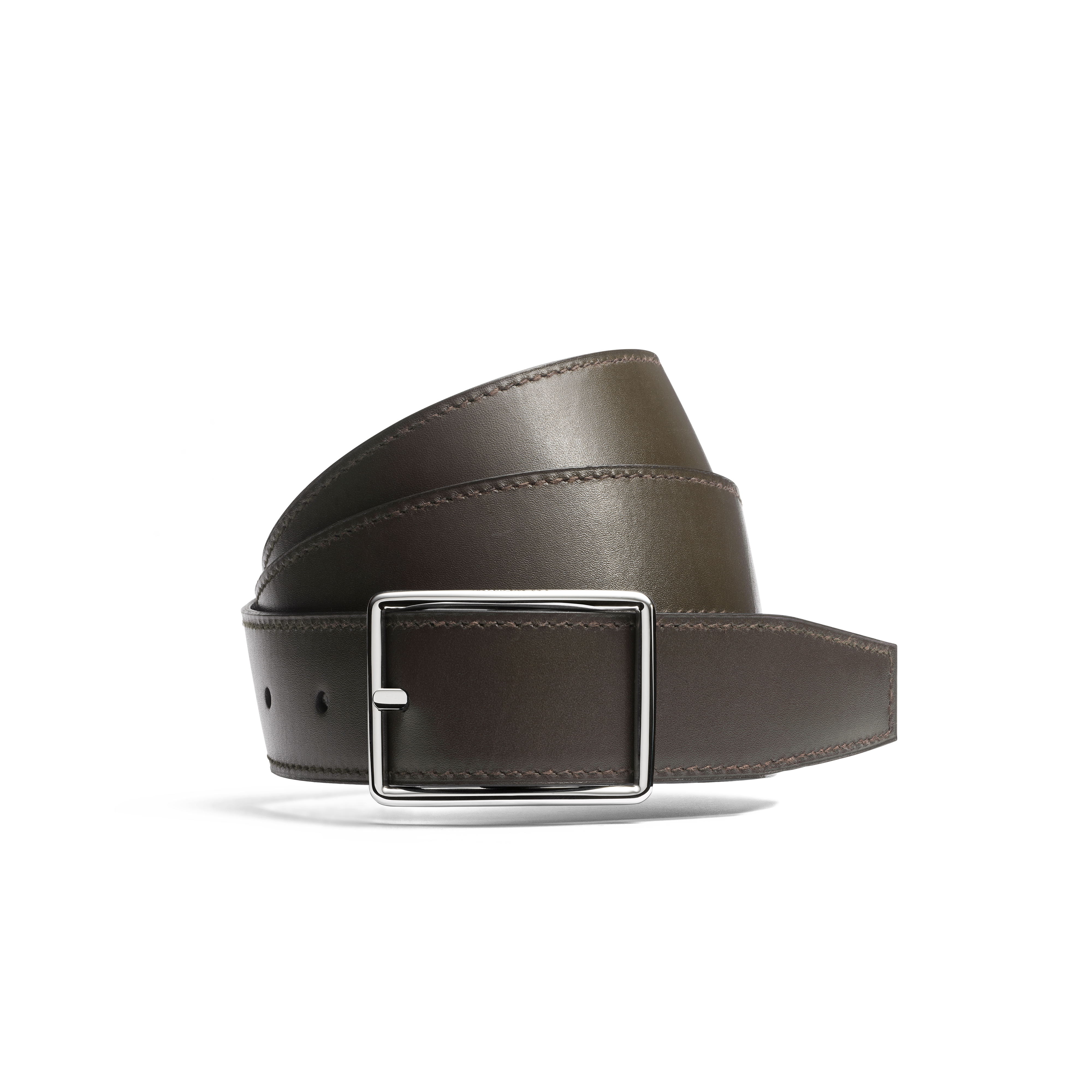 - ブロンズボックスカーフ&ブラックボックスカーフのリバーシブル- パラジウム仕上げのソリッドブラスバックル - エッジは蜜蝋で手作業により染色・艶出し加工 - フランス・リモージュ製