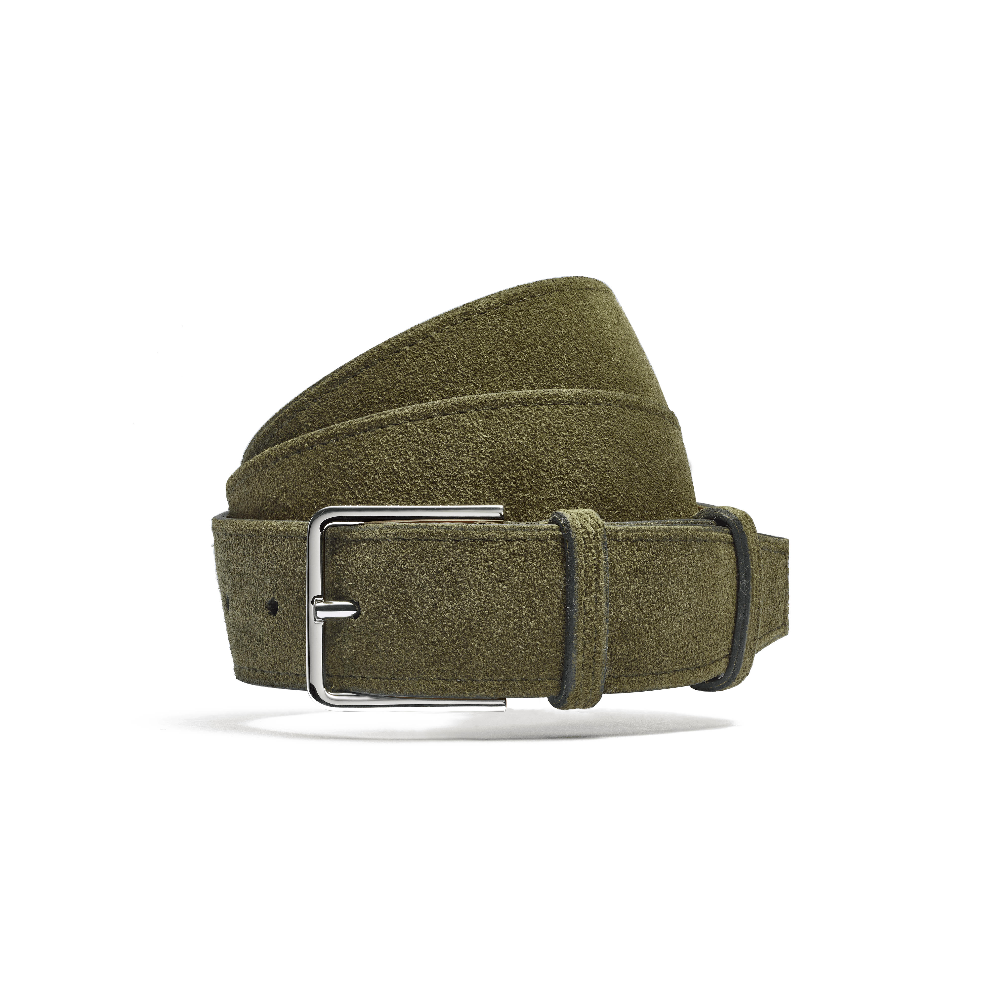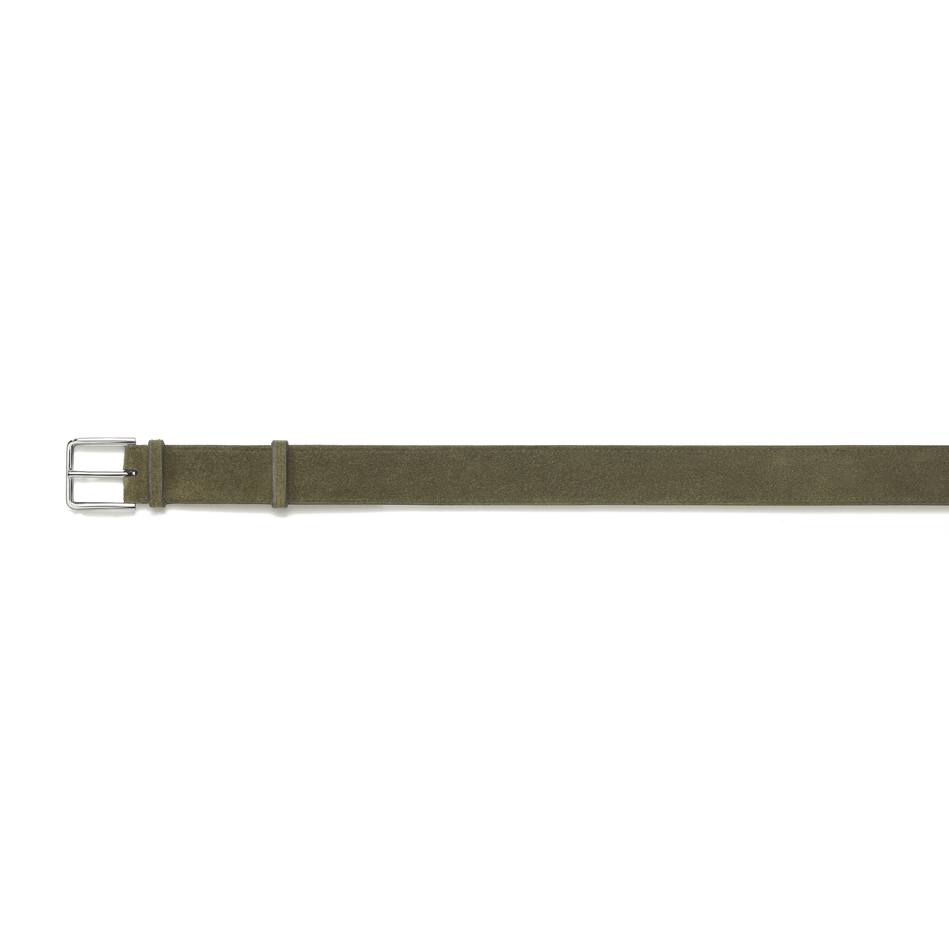 - ベルト幅 3.5cm-カーキスエード-パラジウム仕上げのソリッドブラスバックル- エッジは蜜蝋で手作業により染色・艶出し加工 - フランス・リモージュ製