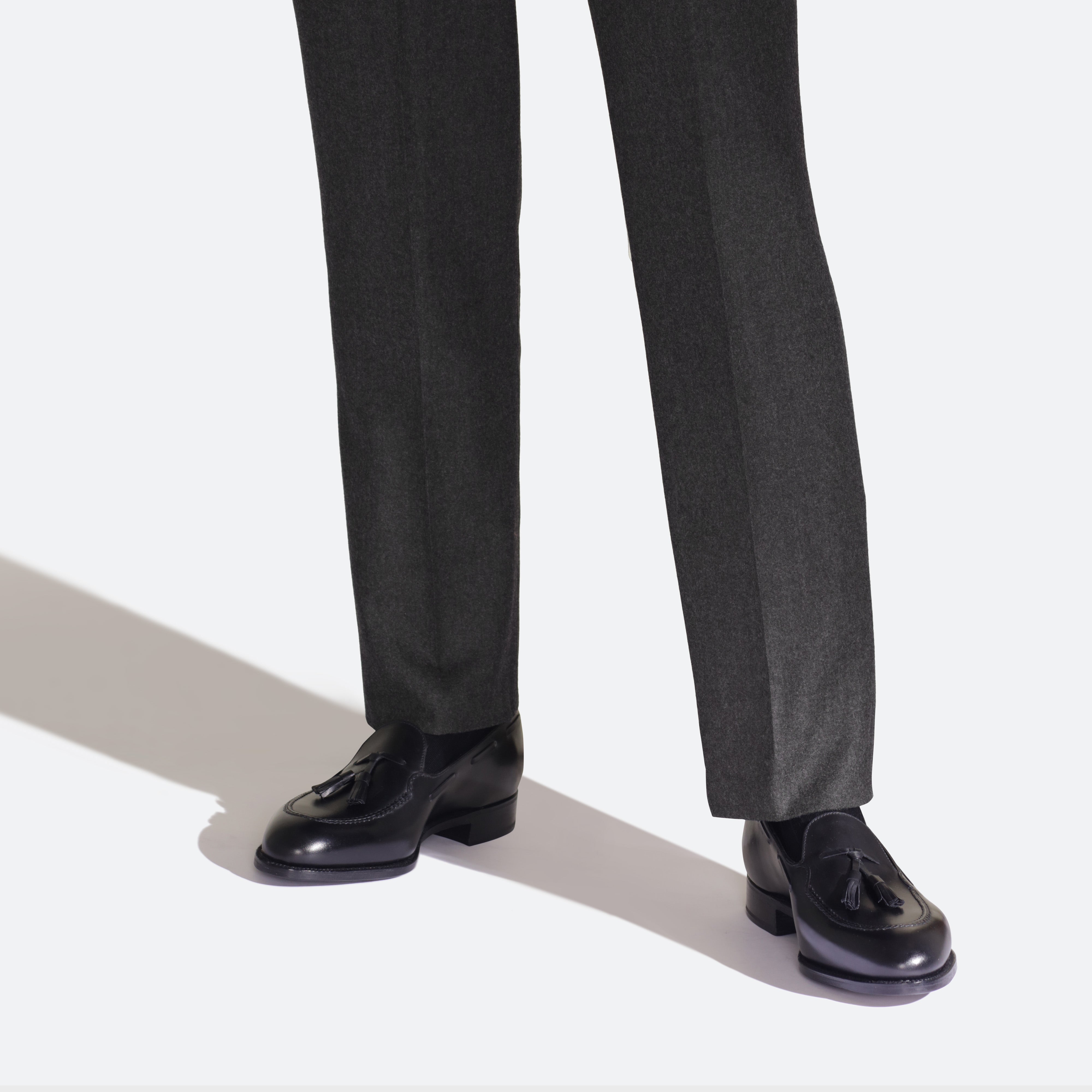 メゾンの永遠のクラシックであるタッセルローファー。エプロンに施された手縫いのステッチは精密で完璧な輪郭を描きます。混じり気なく伝統を示すレザーレースは王道の貫禄。エレガントで滑らかなボックスカーフが、それらをより一層引き立たせ象徴的にさせます。
