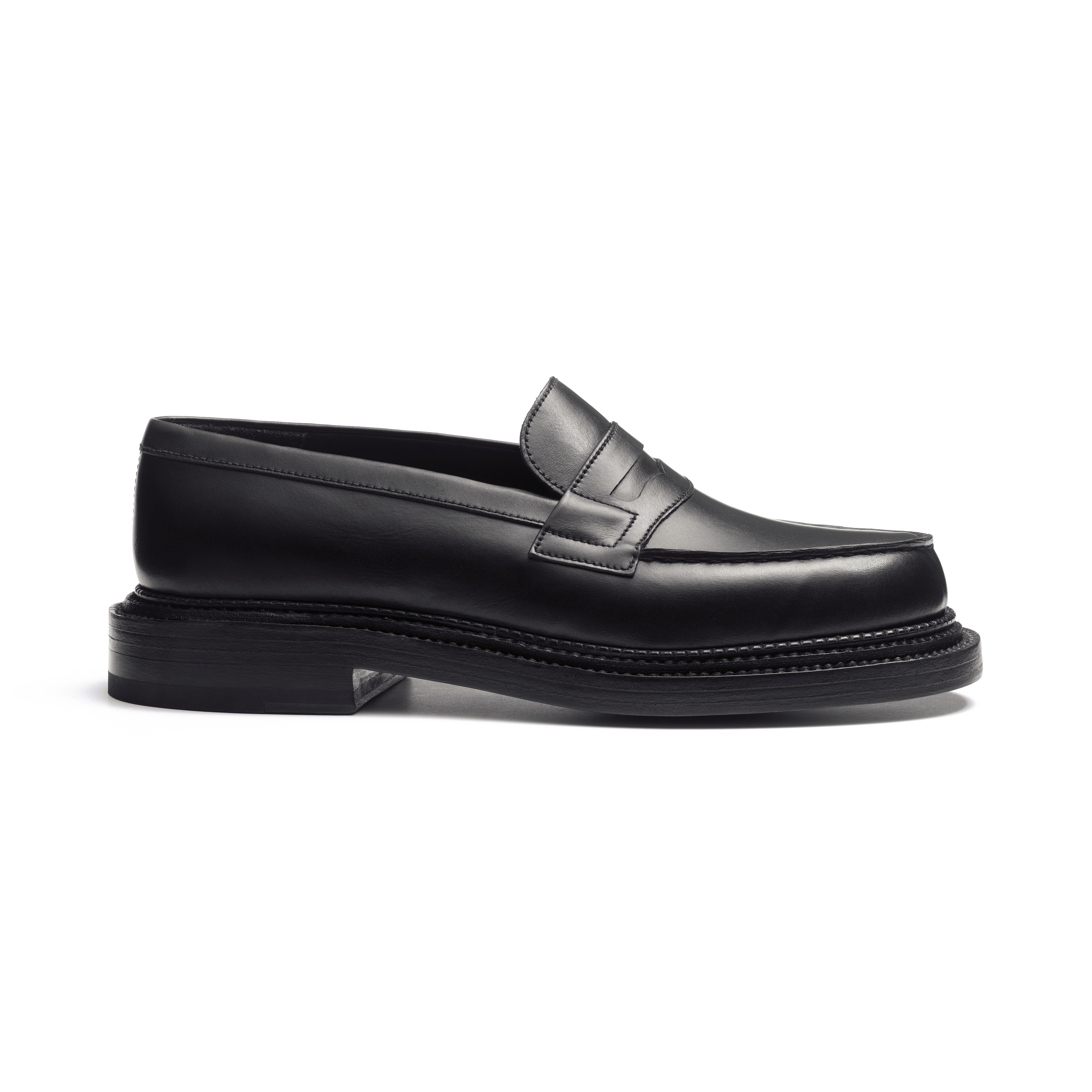 - ブラックボックスカーフのアッパー- ブラックカラーのカーフスキンライニング- グッドイヤー製法-フランスのタンナー〈Bastin & Fils〉によるベジタブルタンニンなめしのトリプルソール- フランス・リモージュ製