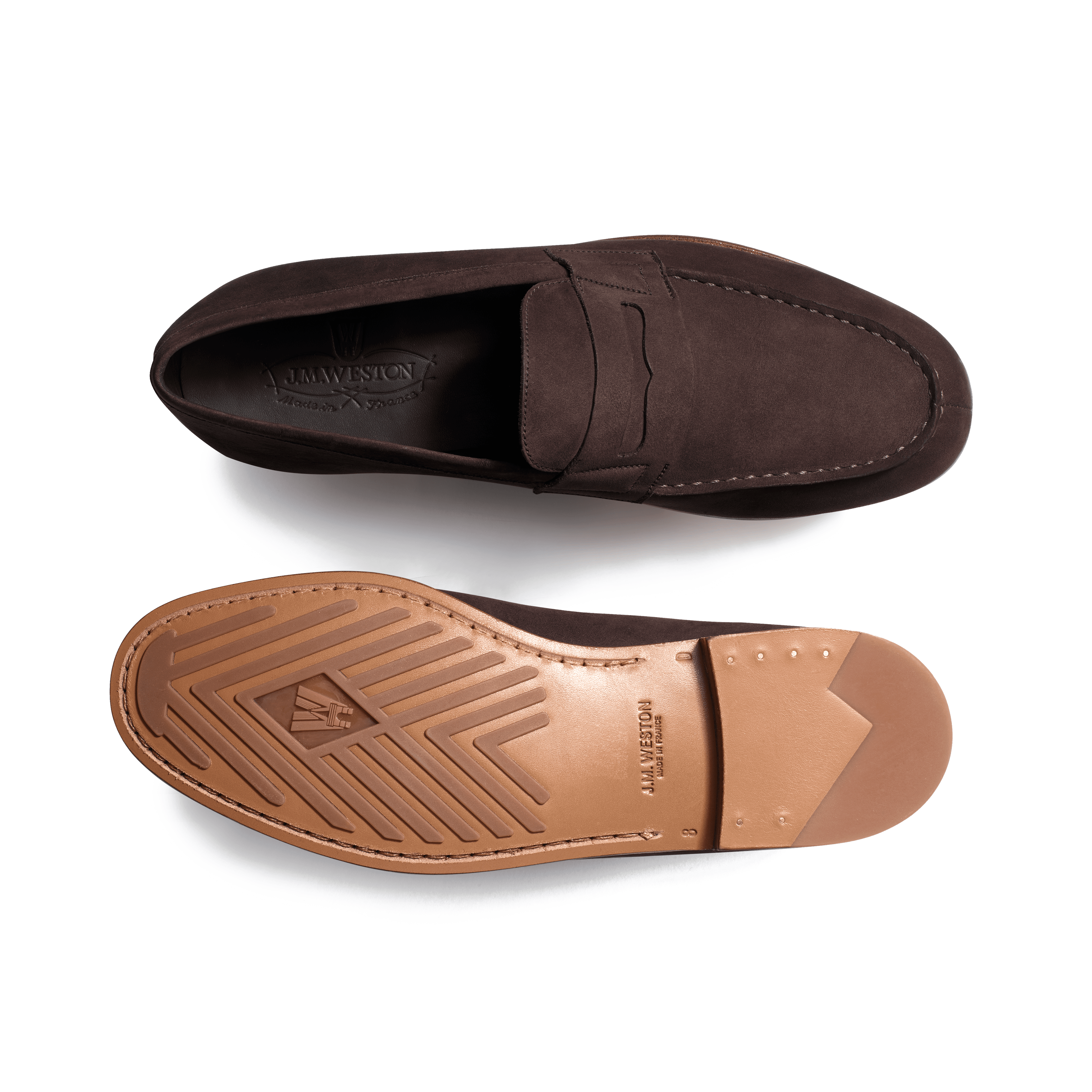 メゾンの象徴であるシグニチャーローファー #180 をカジュアルにデザインした、ル・モック。ブレイク製法、内部補強の簡素化、ラバーインサート付きレザーソール、革新的な仕様で素足の履き心地を追求しました。豊富なカラーバリエーションで彩られたル・モックは、伝統的なルールからモカシンを解放させた1足。