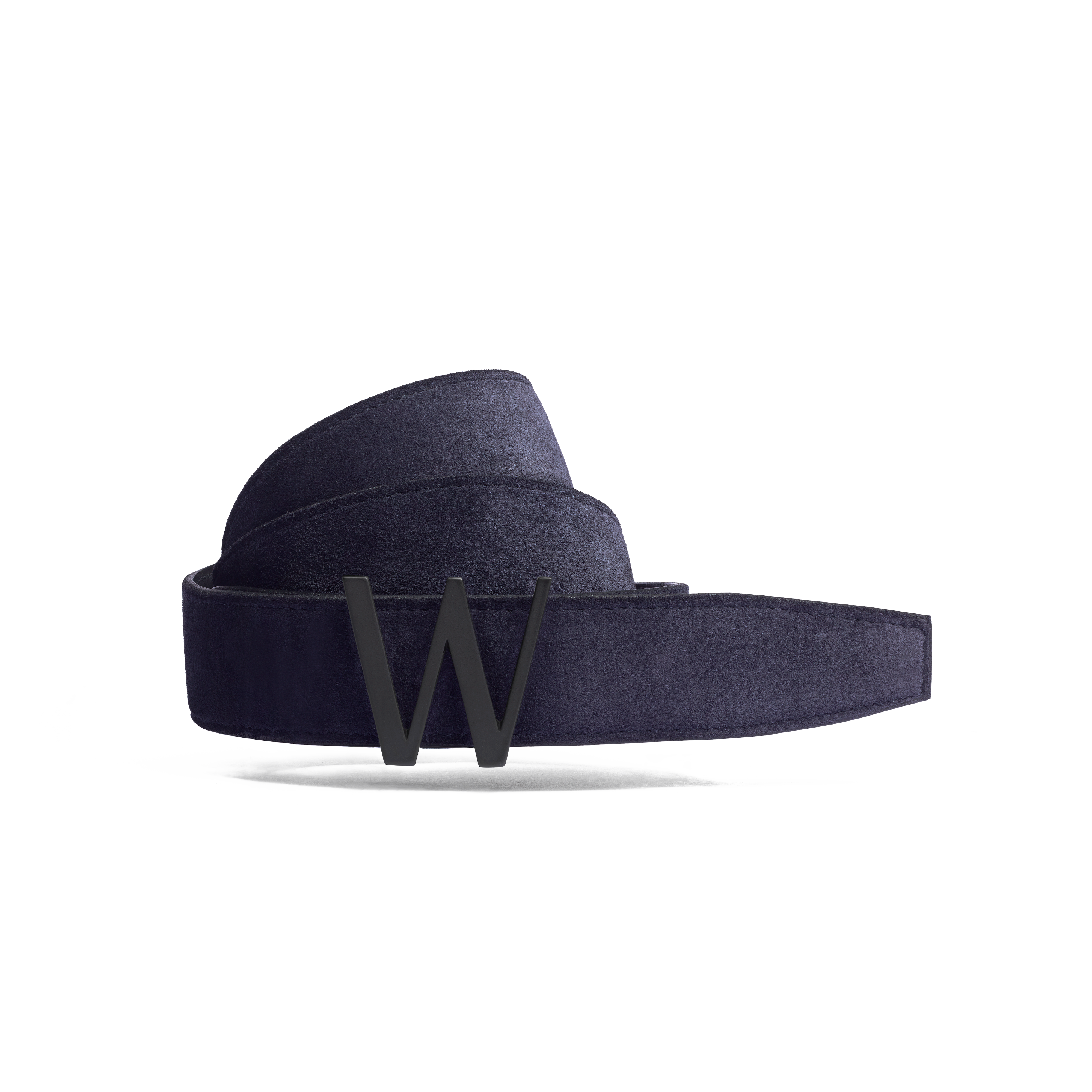 - エッセンシャルネイビーブルースエード&ブラックカーフ- マットブラックのブランドのシグネチャー「W」バックル - トーンオントーンのステッチ、手作業での艶出し仕上げ - フランス・リモージュ製