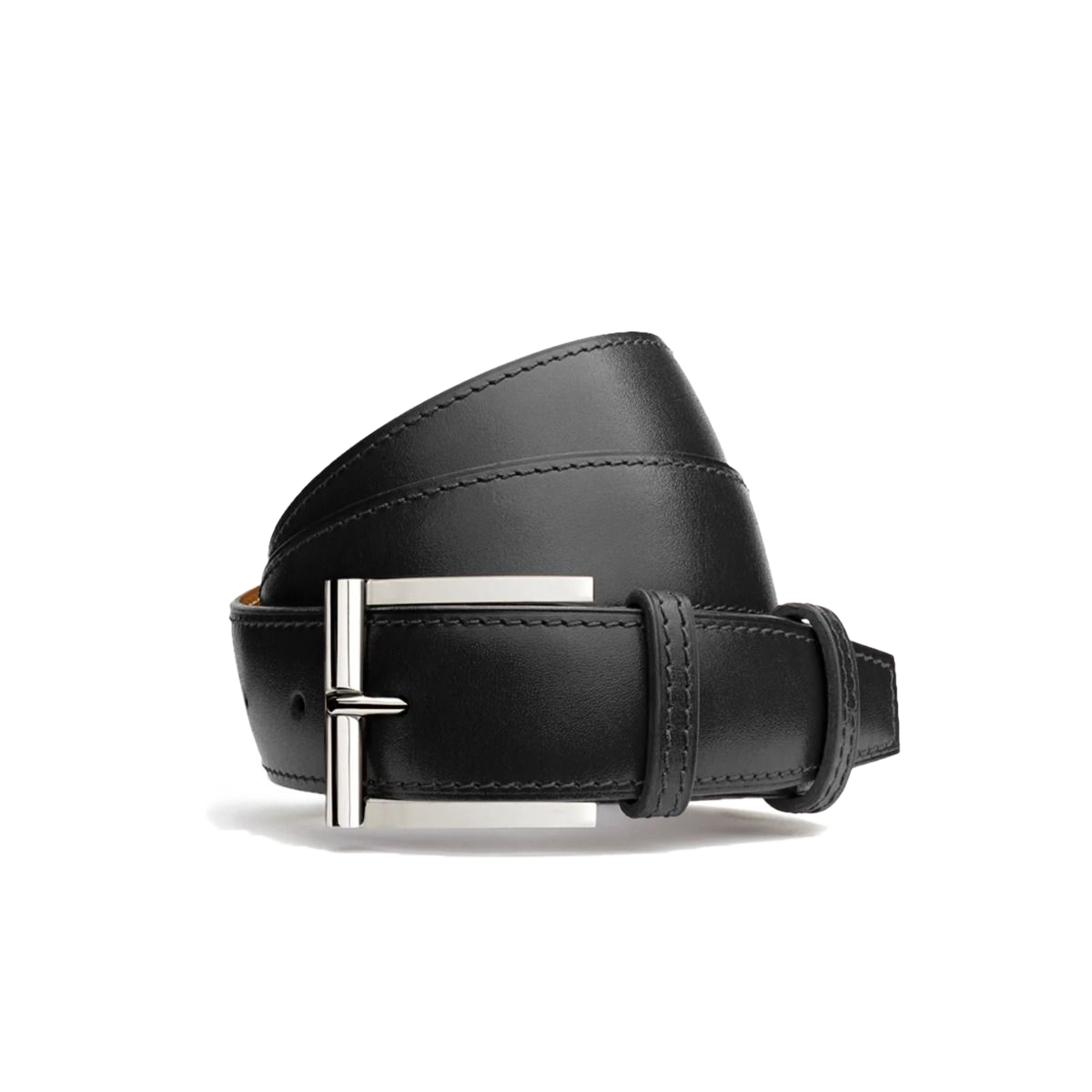 - ベルト幅 3.5cm- ブラックボックスカーフ- パラジウム仕上げのソリッドブラスバックル、J.M. WESTONの刻印入り- 洗練されたスリムで上品なバックル- エッジは蜜蝋で手作業により染色・艶出し加工- フランス・リモージュ製