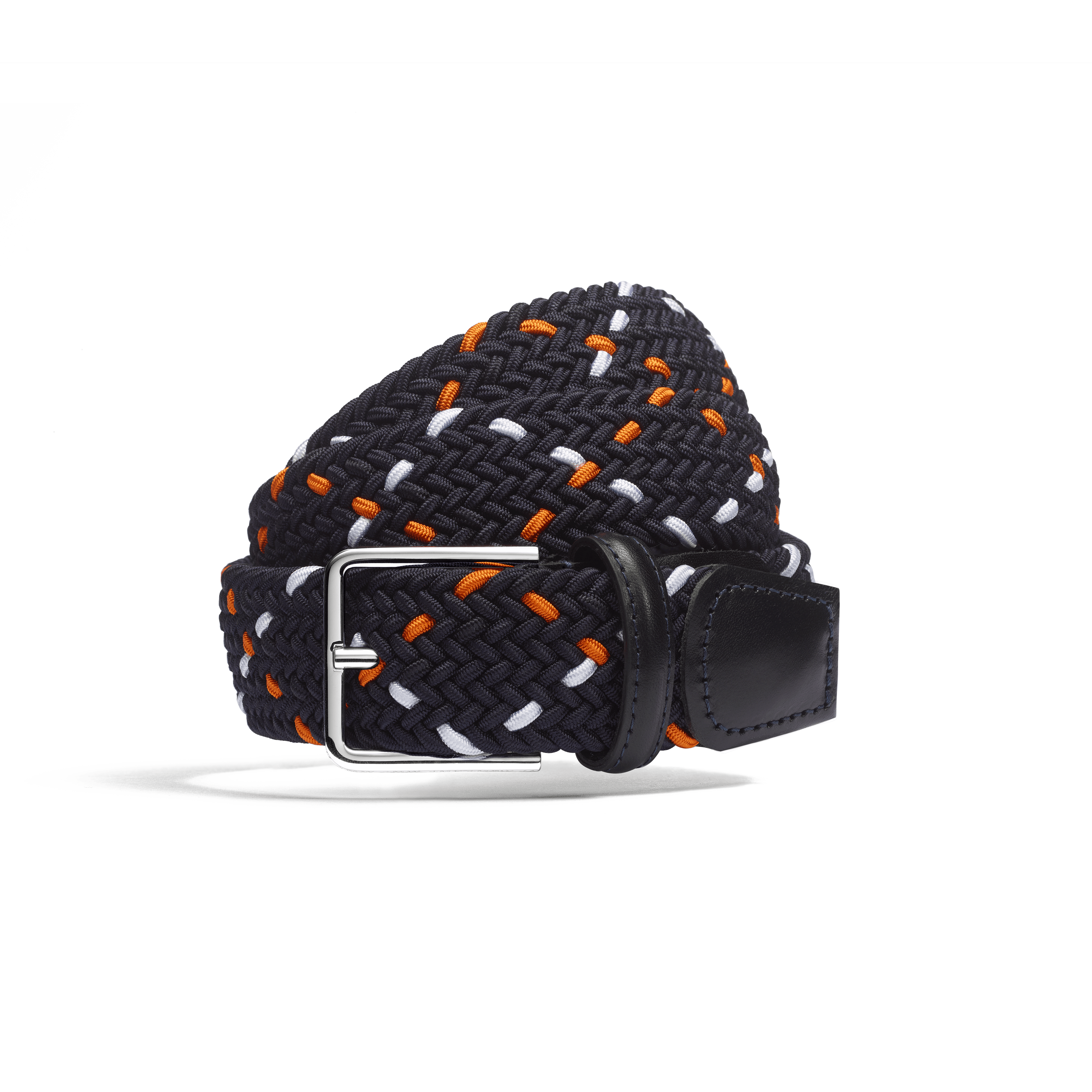 - 伸縮性のあるナイロン編み - パラジウム仕上げのソリッドブラスバックル- ブルーのカーフレザー ディテール - イタリア製