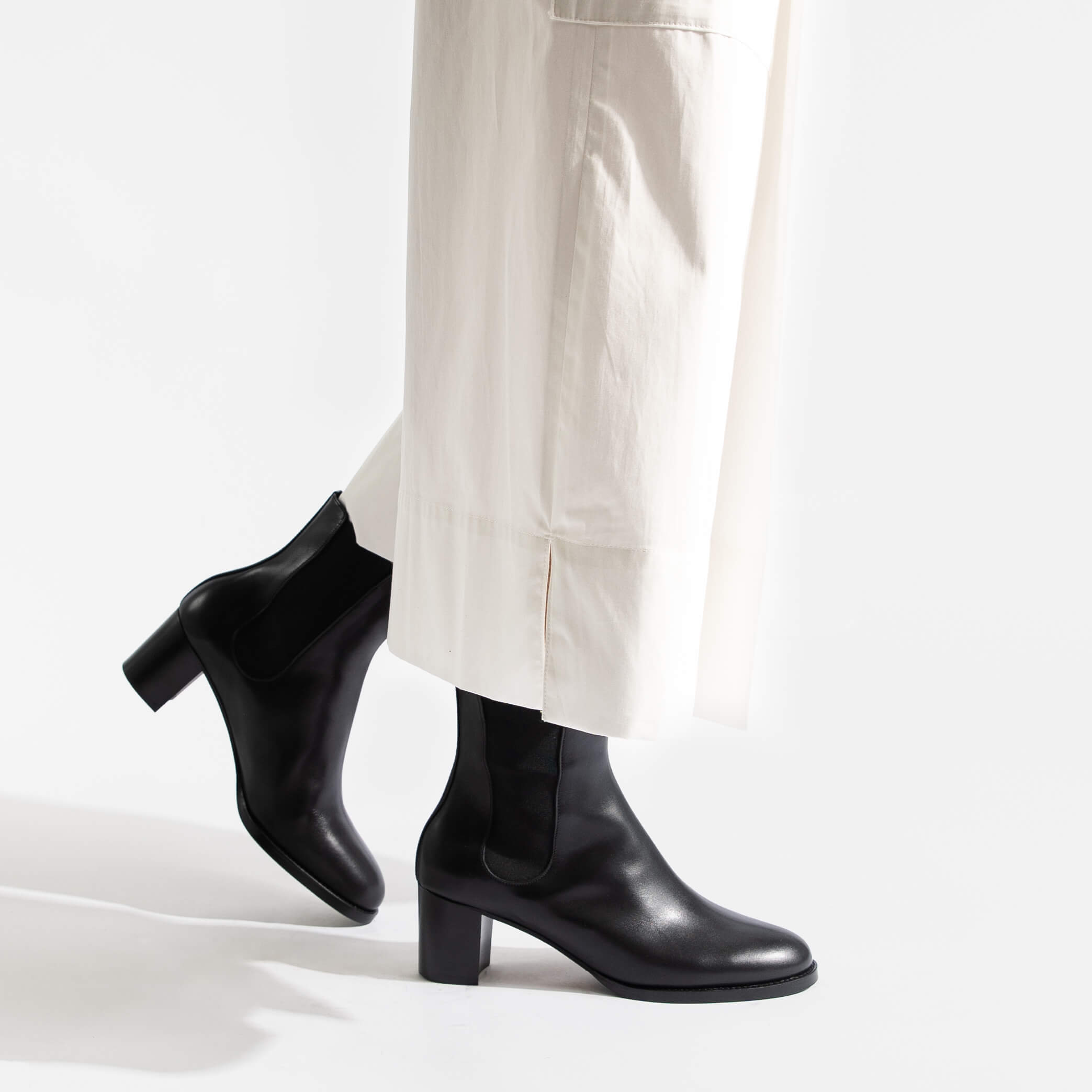 象徴的なサイドゴアーブーツ「#705」は、5.5cmのヒールで上品に仕上げられ、スマートさと快適さ兼ね備える理想的でアクティブなシルエットを提供します。ヒール版#705は、特徴的なカーブが目印で、シルエットを引き伸ばし、洗練されたラインがシックで現代的な印象を与えます。