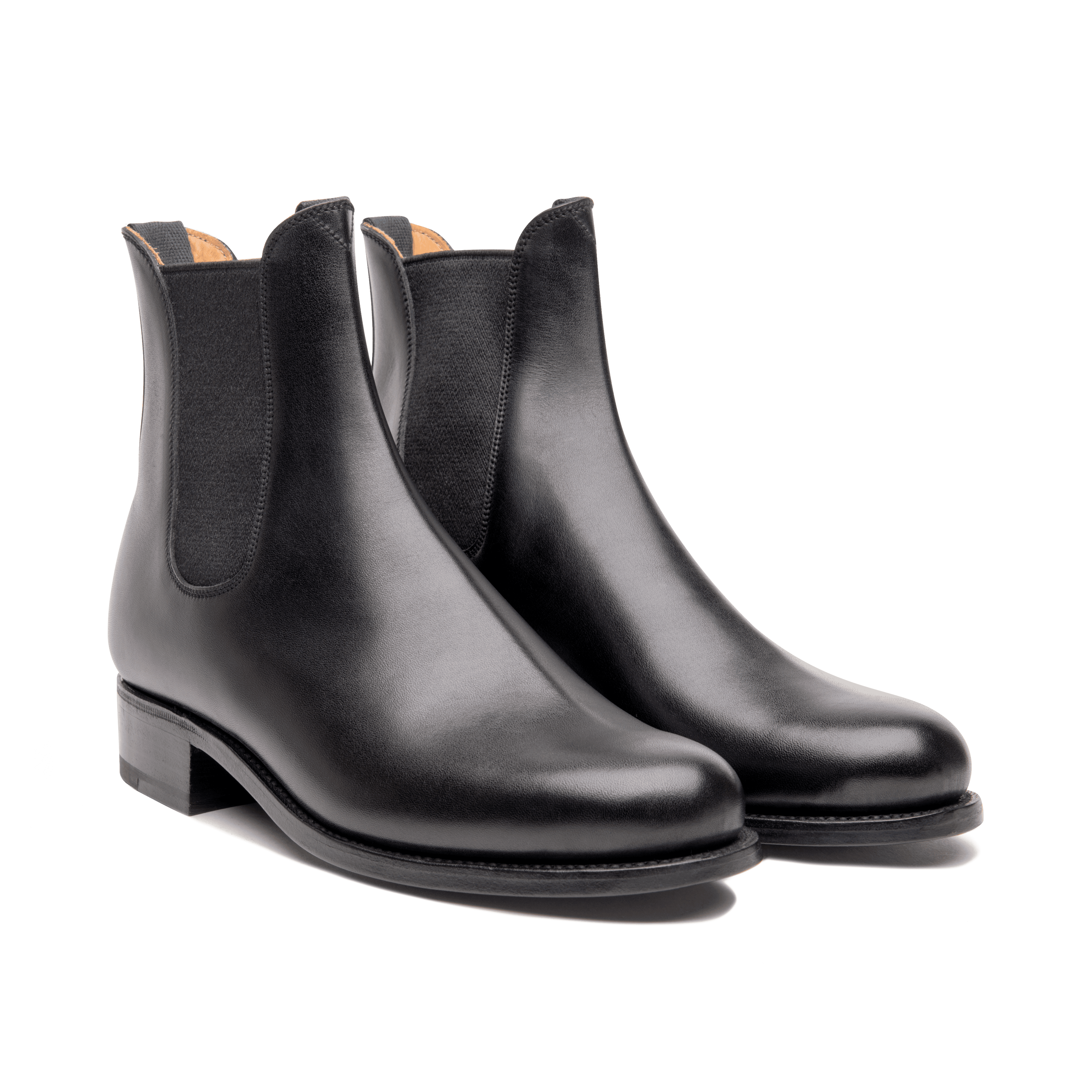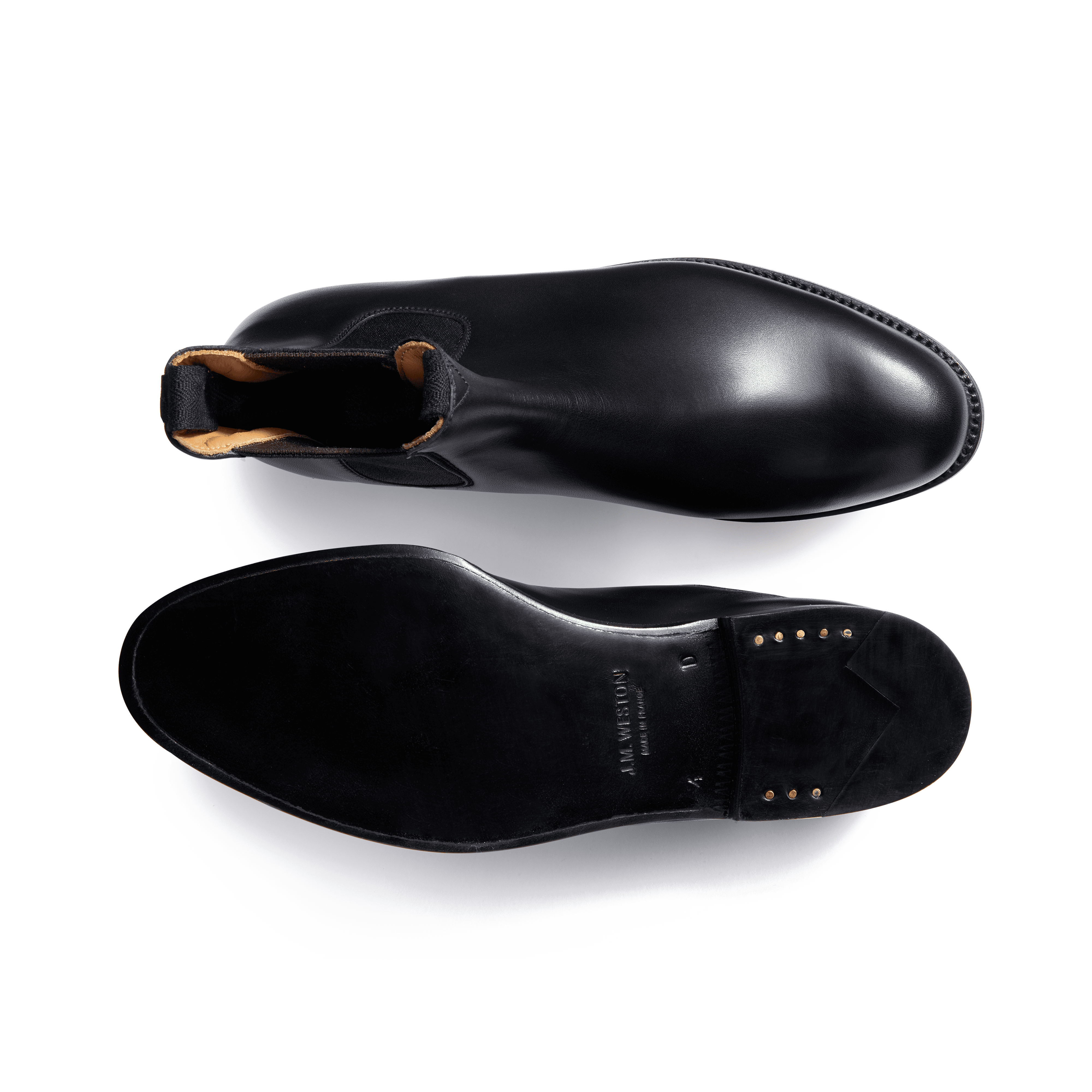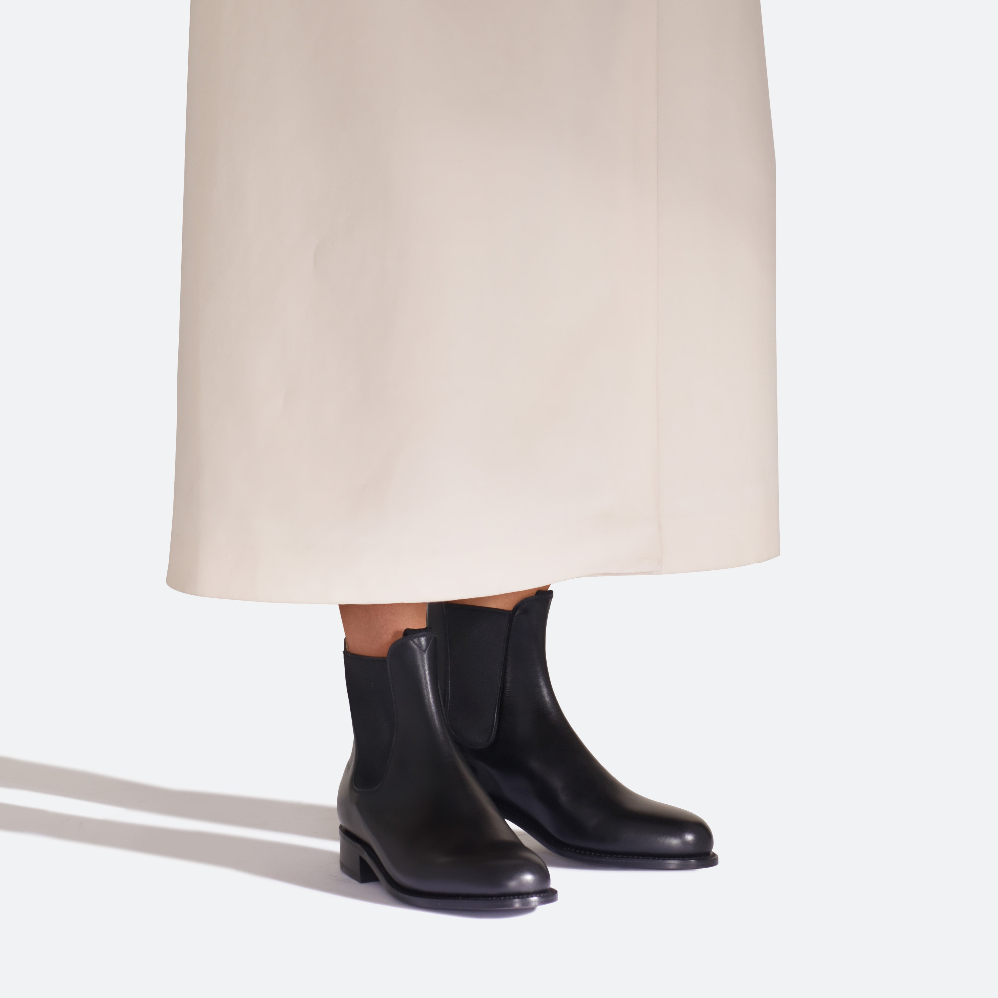 Ce savoir-faire consiste à tendre le cuir de la tige (dessus de la chaussure) à la main, sur une forme en bois afin de lui garantir une courbe idéale qui ne s’affaissera pas dans le temps. Coupée dans une seule pièce de cuir ainsi galbé, la bottine Cambre, que rien ne vient perturber dans son dessin autre que l’élastique ami, est un exemple d’ergonomie.