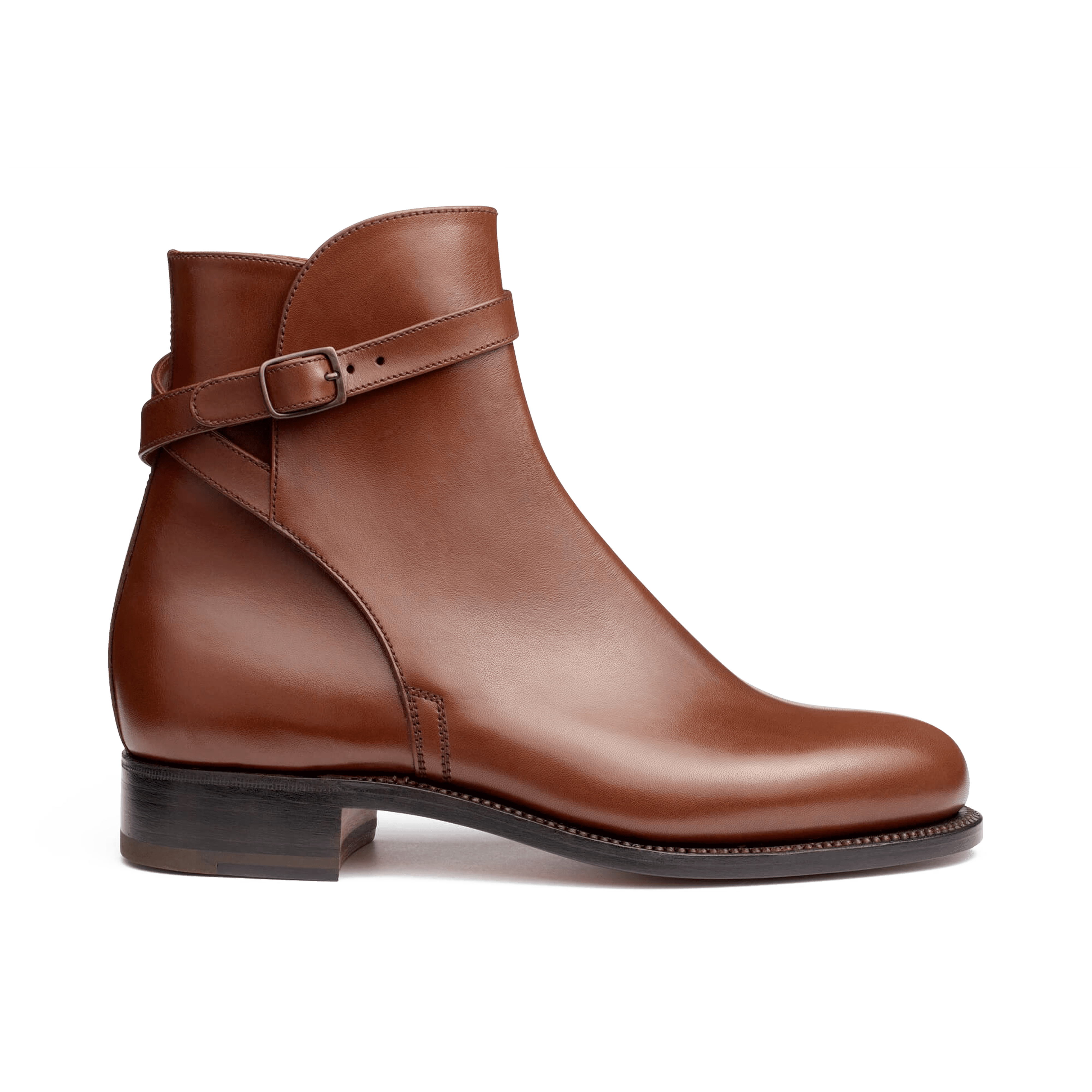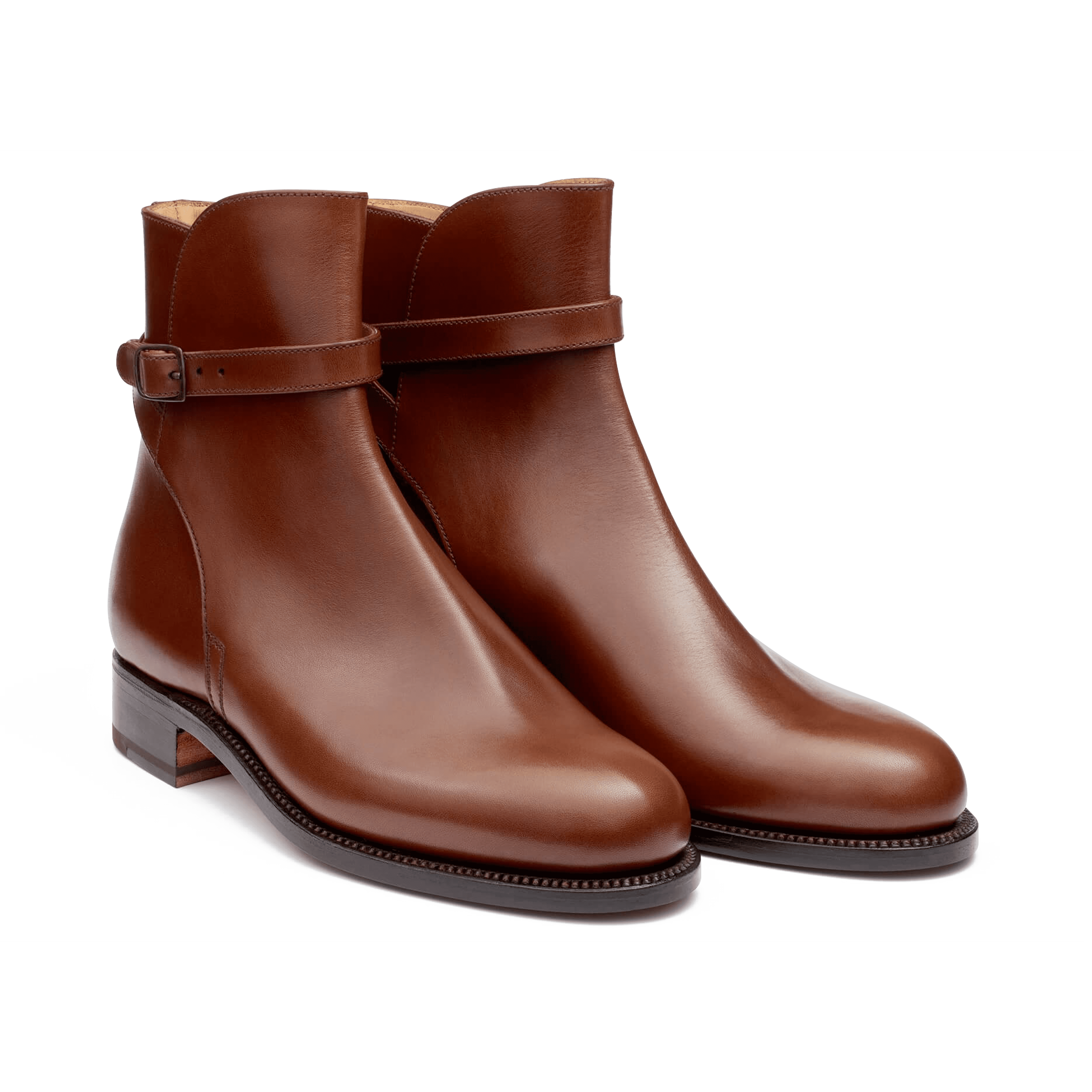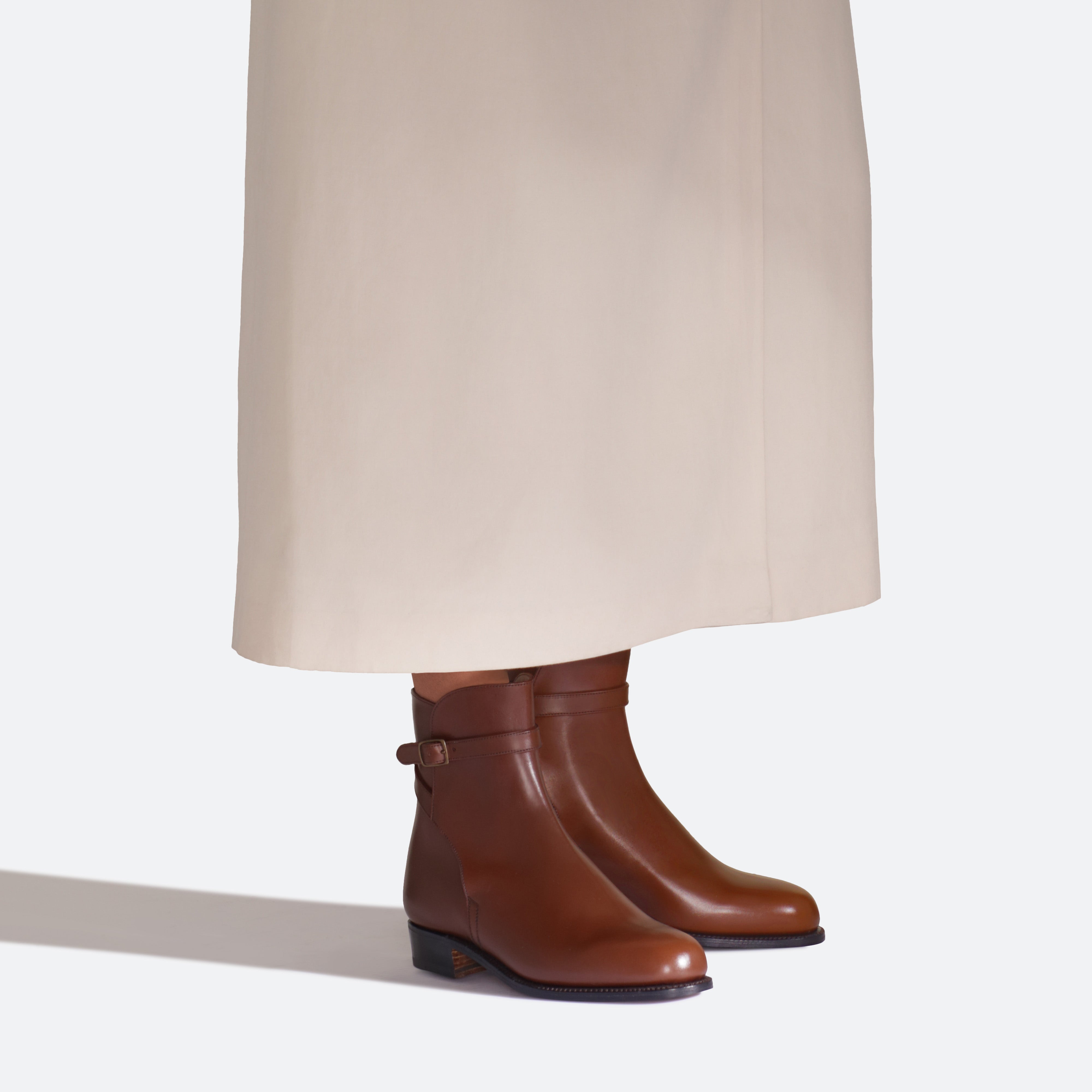メゾンが生み出す伝統的なジョッパーブーツ。Wの刻印入りのアンティーク調バックルと端正なクリースライン、セミスクエアトゥがクラシカルさを引き立てます。バックステイでクロスするストラップは、足首をしっかりとホールドすると共に乗馬の様式美を表現するユニークな意匠。