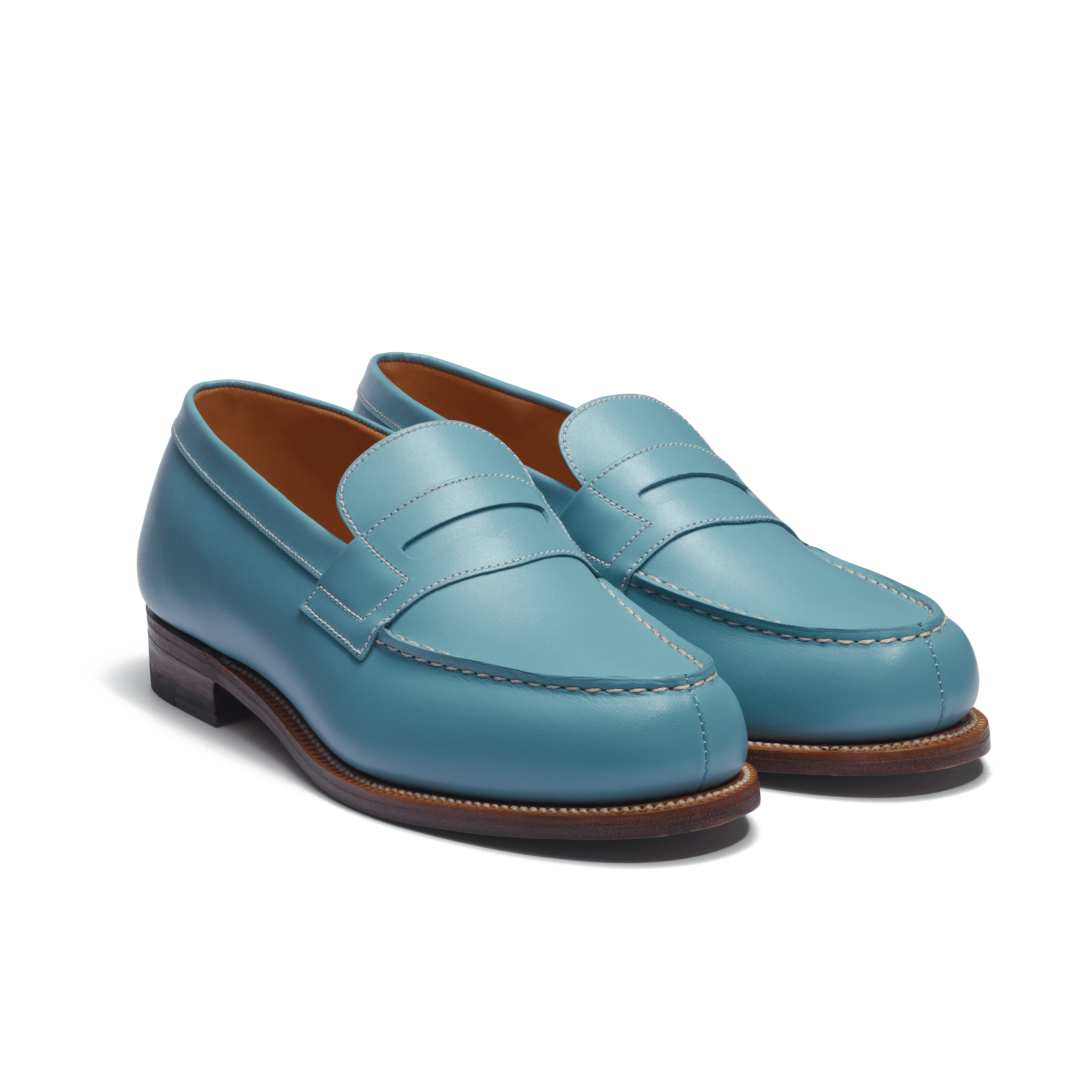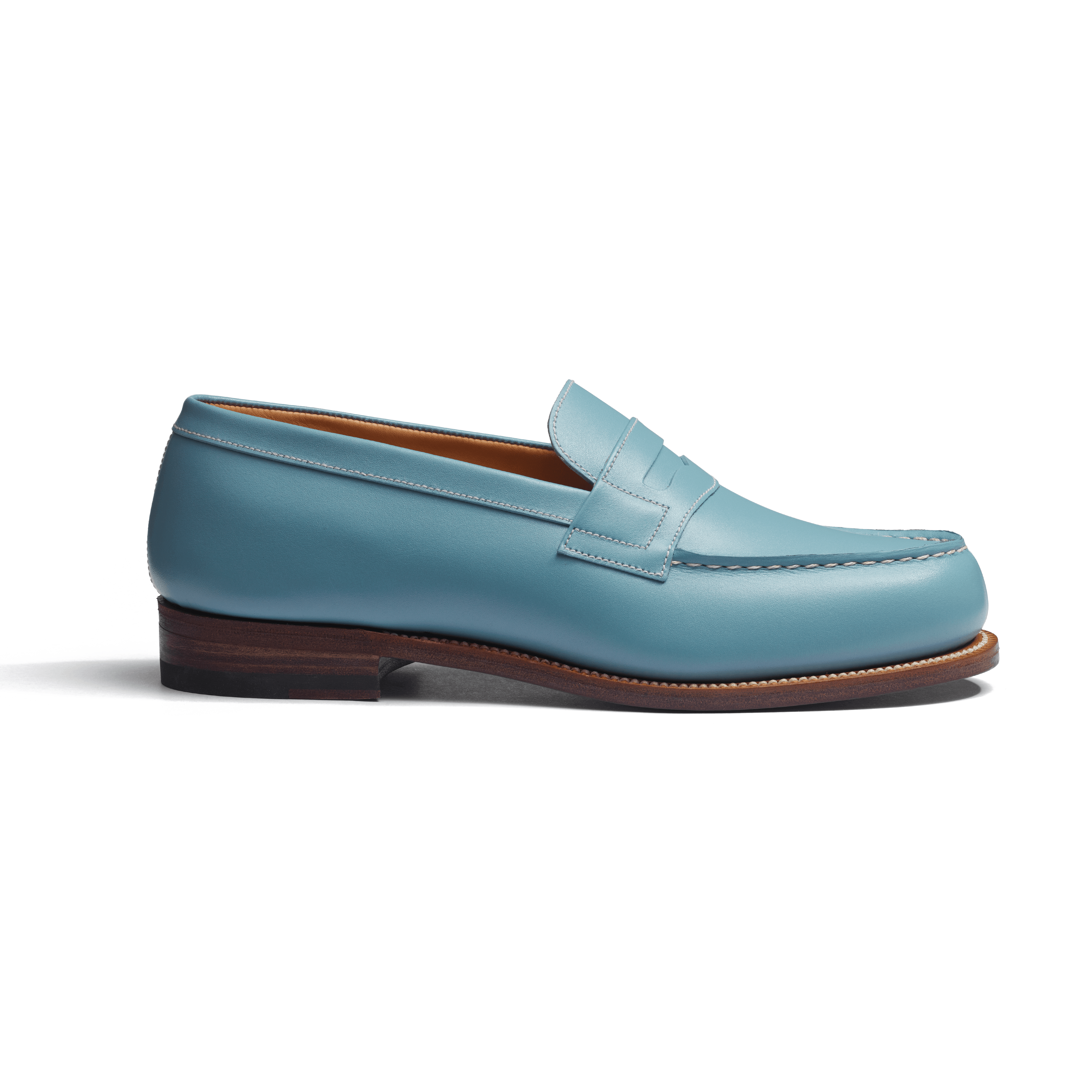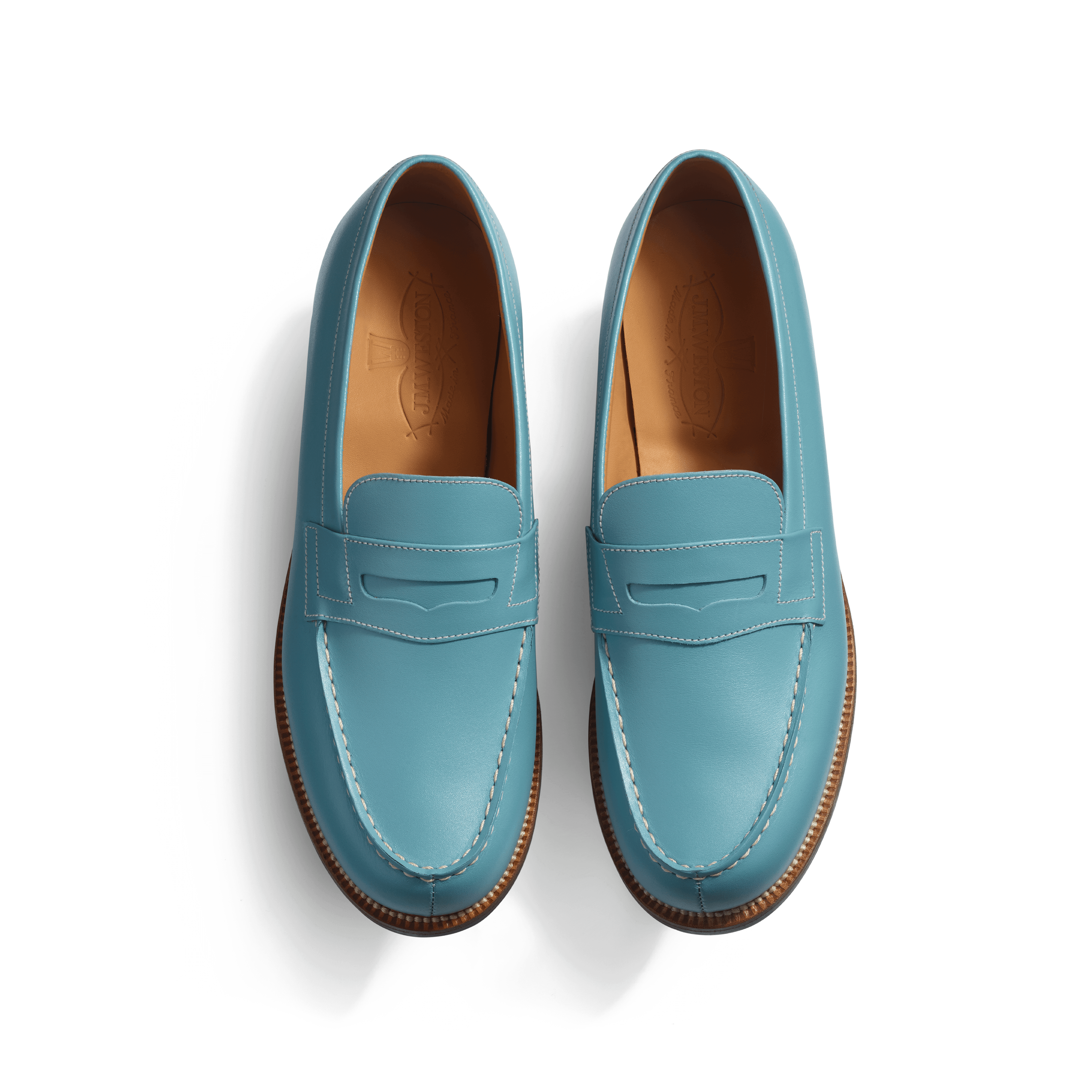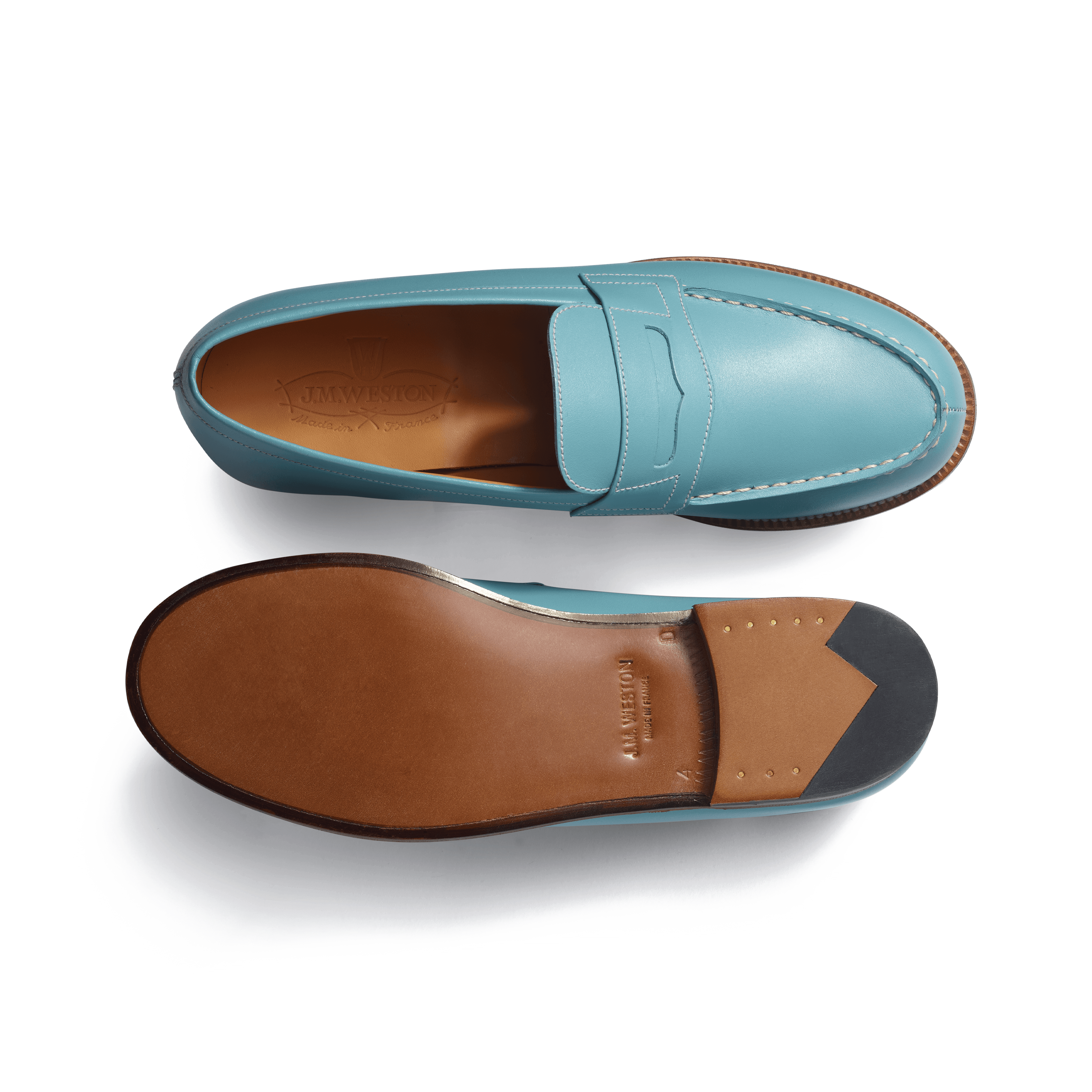 - キャンパニュールブルーのボックスカーフ- ナチュラルカラーのカーフスキンライニング- グッドイヤー製法- フランスのタンナー〈Bastin & Fils〉によるベジタブルタンニンなめしのソール- フランス・リモージュ製